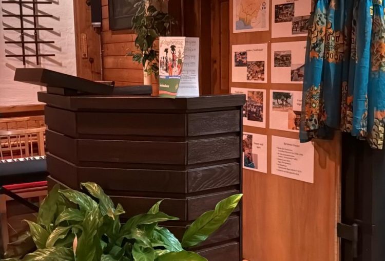 In diesem Jahr wurde der Weltgebetstag am 6.3. in der Christuskirche gefeiert. Sie war perfekt passend zum Themenland Nigeria mit afrikanischer Kunst und traditionellen Gewändern geschmückt. Dank der zeltartigen Holz-Architektur der Christuskirche und der aufwändigen Dekoration entstand eine wunderbare exotische Atmosphäre mit afrikanischer Note.